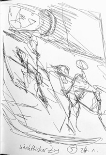 Gestern hatte ich die Tarotkarte „Ritter der Schwerte“ in meiner Hand gezeichnet und war dann zu einem Besuch gefahren.
