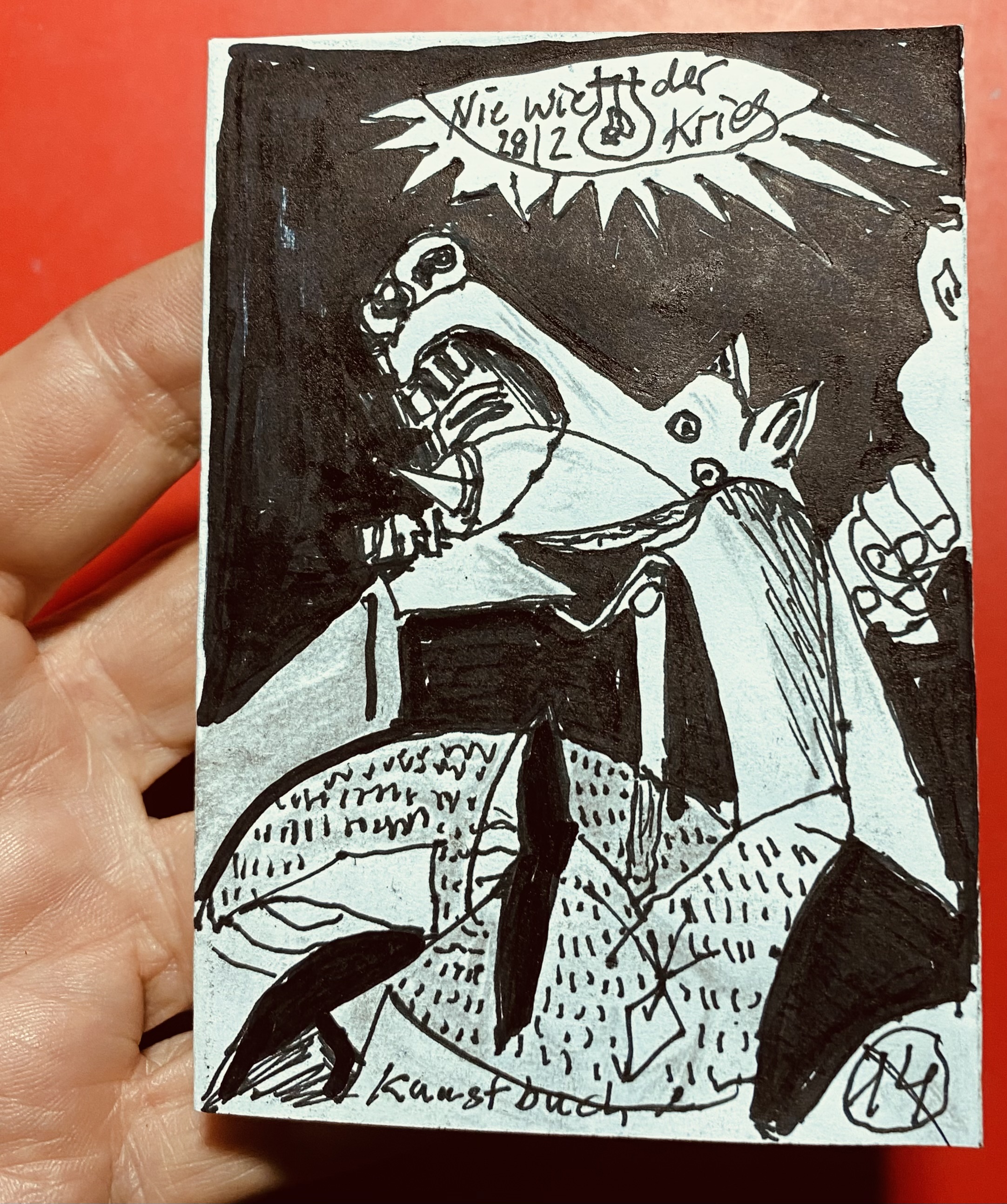 Für den Umschlag zeichnete ich einen Ausschnitt aus Picassos Guernica, angeregt durch Stefan Kraus, der über das Leiden der Menschen und der Tiere weint.