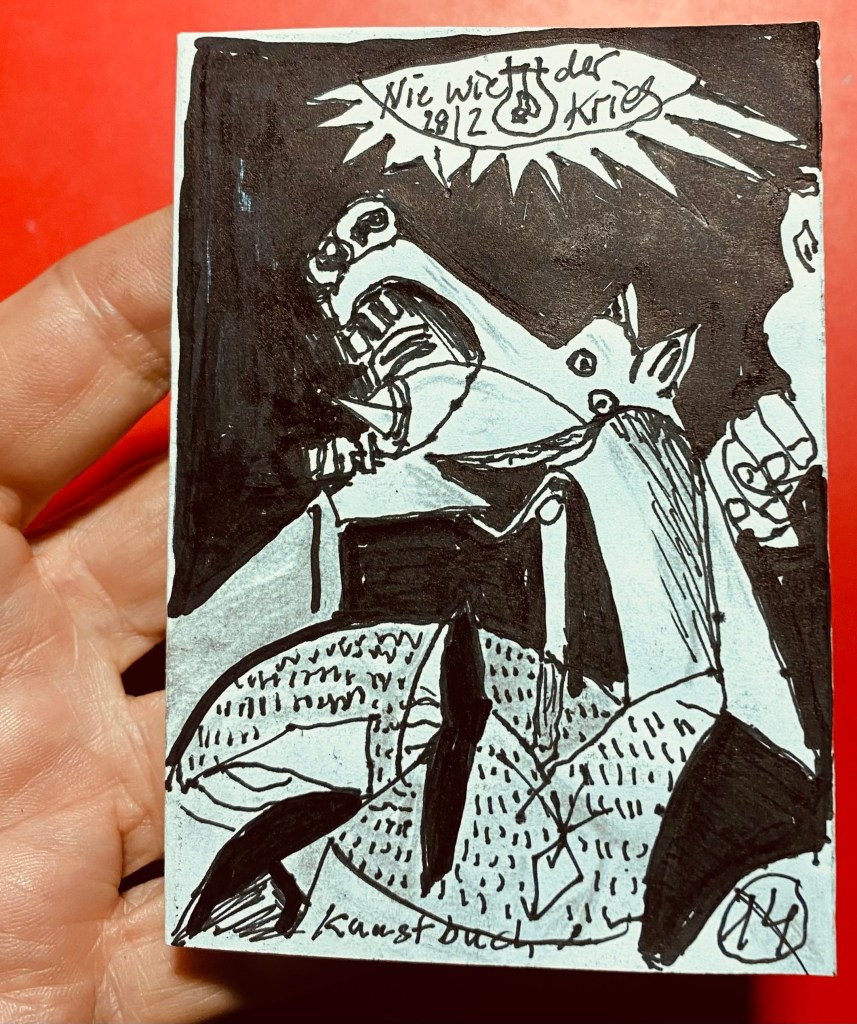 Krieg, Krieg und noch mehr Krieg. Um der Lähmung angesichts der Schrecken etwas entgegenzusetzen, setzte ich mich daran, ein 14. Kunstbuch , diesmal mit Bildern von Malern des 20. Jahrhunderts, die den WW1 miterlebten, zu gestalten.