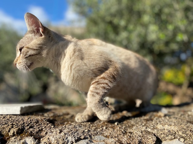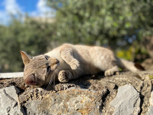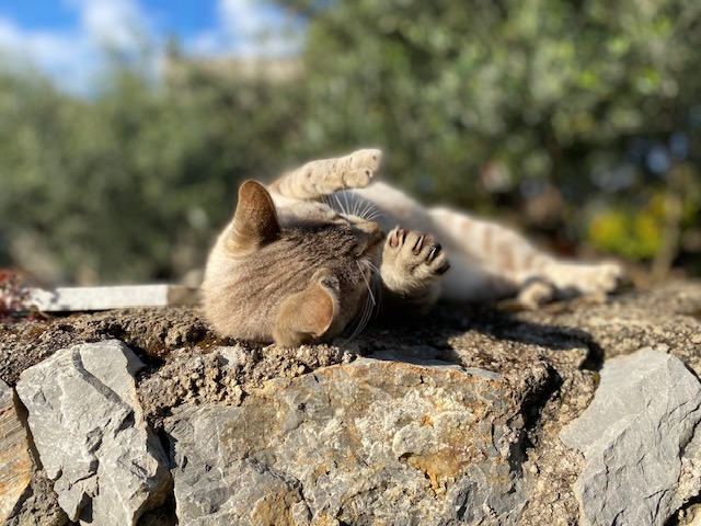 Hier ein paar Fotos von Lin, der sich auf der Mauer rekelt, um von mir gestreichelt zu werden.