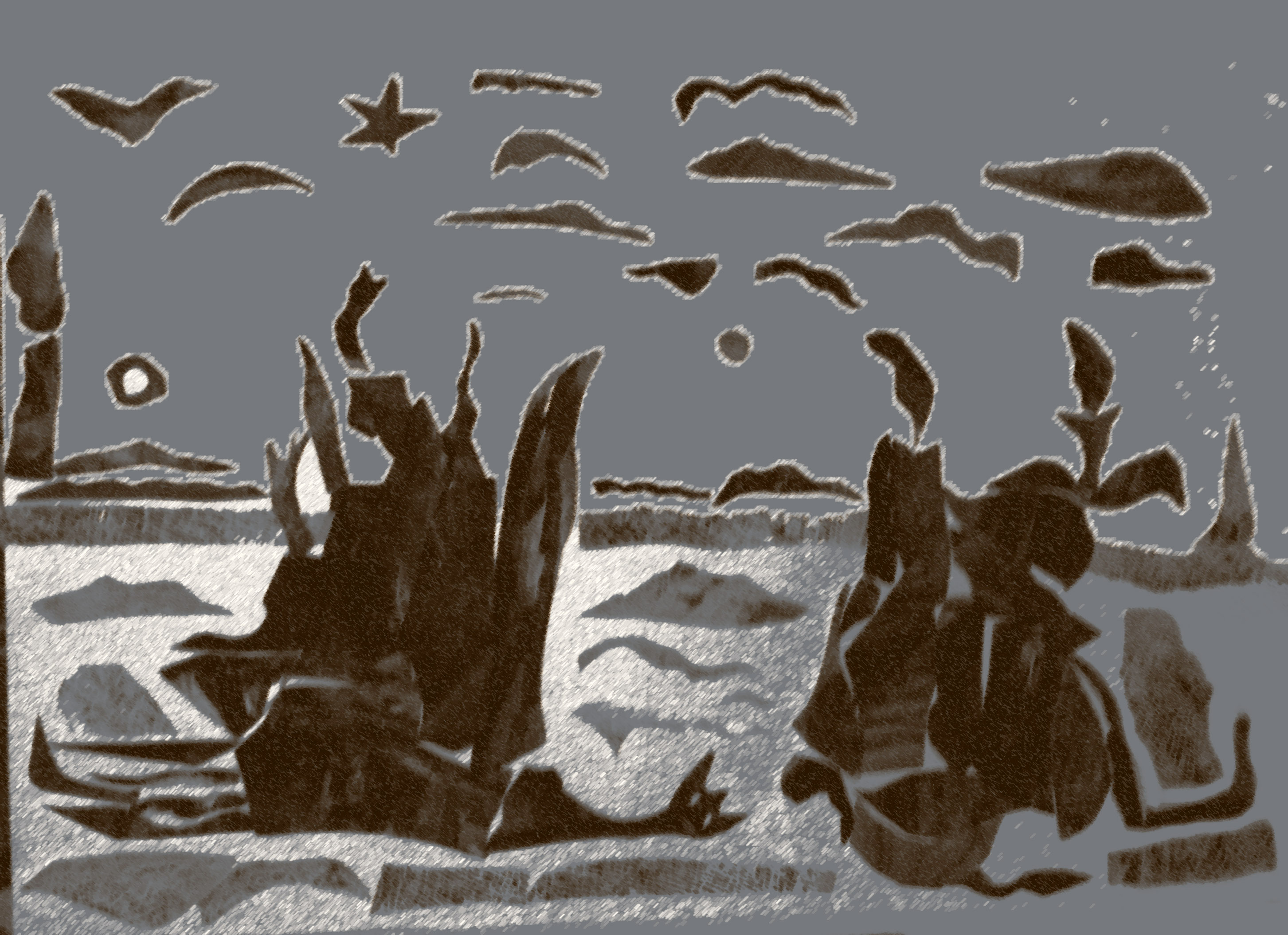 Und wenn alles gesagt war, brachte uns das Schiff der Phäaken sicher heim. Das ist nun vorbei. Eine solche Heimfahrt können uns die Phäaken nicht mehr bescheren. Denn Poseidon, der ewig erzürnte, machte das Schiff zu Stein und verankerte es fest im Boden. Das Denken, der uns sicher aus dem Unbewussten über die Kunst in die Gegenwart führte, versteinerte. Scheria wurde zu einem geographischen Begriff. Ist’s Korfu? Ist’s ein morgenländisches Land? Oder spricht Homer von Apulien, von Sardinien, vielleicht sogar von Atlantis? Ihr sucht es vergebens auf der Landkarte. Finden könnt ihr es nur mit der Seele.