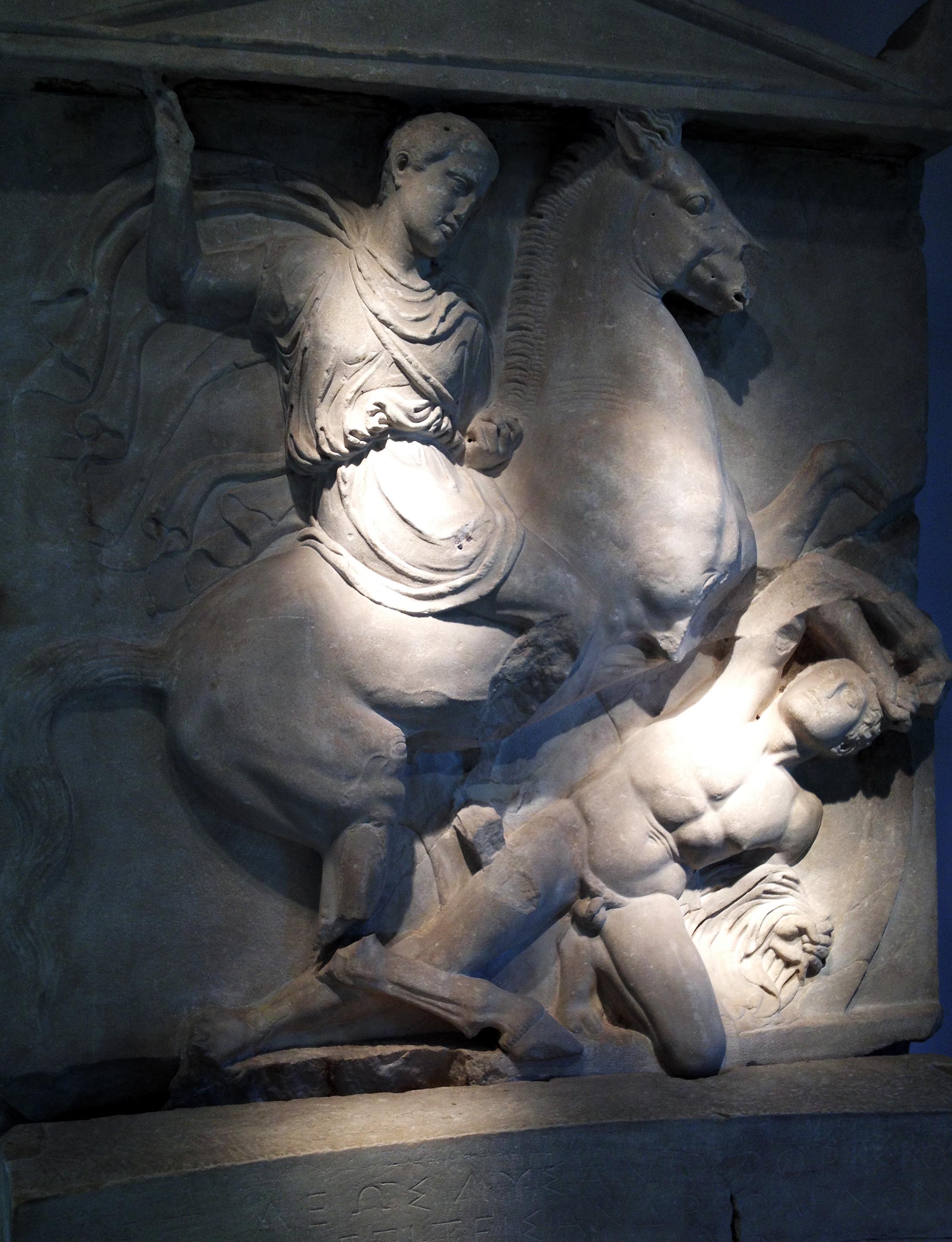 Das heutige stammt aus der klassischen Zeit Athens. Es gehört zu einem Grabmal auf dem antiken Friedhof Athens, dem Kerameiko. Es befindet sich in dem dortigen sehr schön gestalteten Museum.