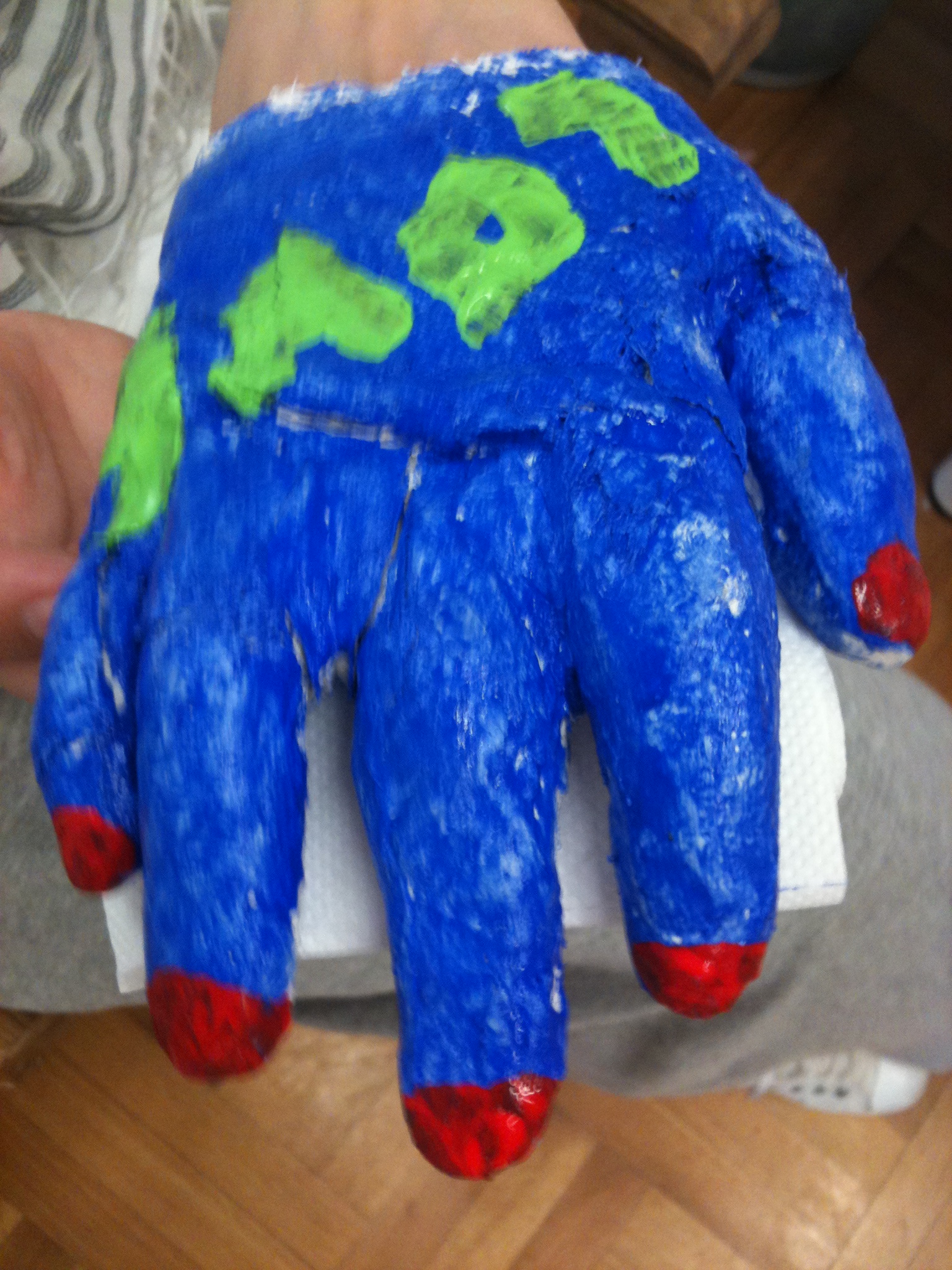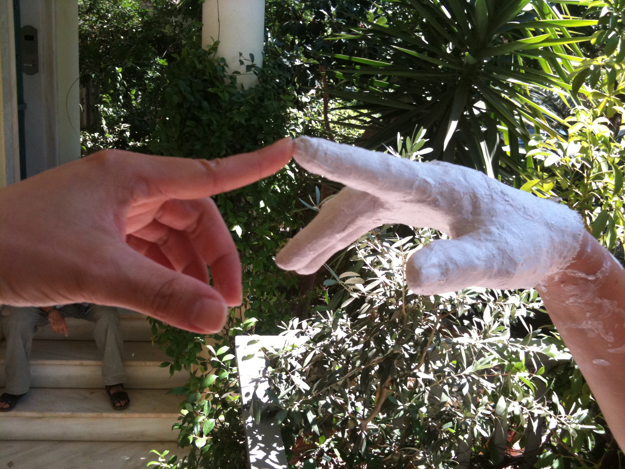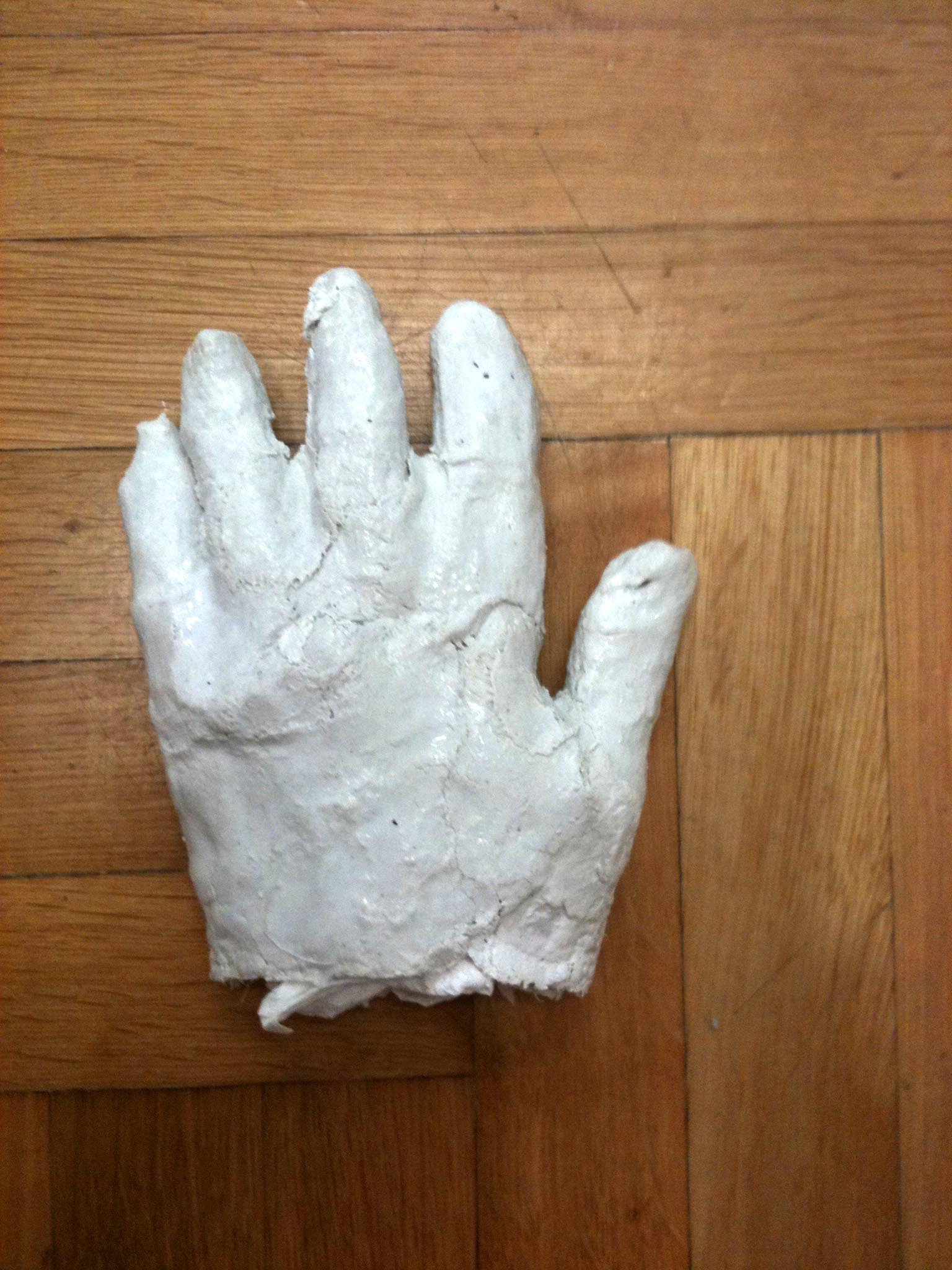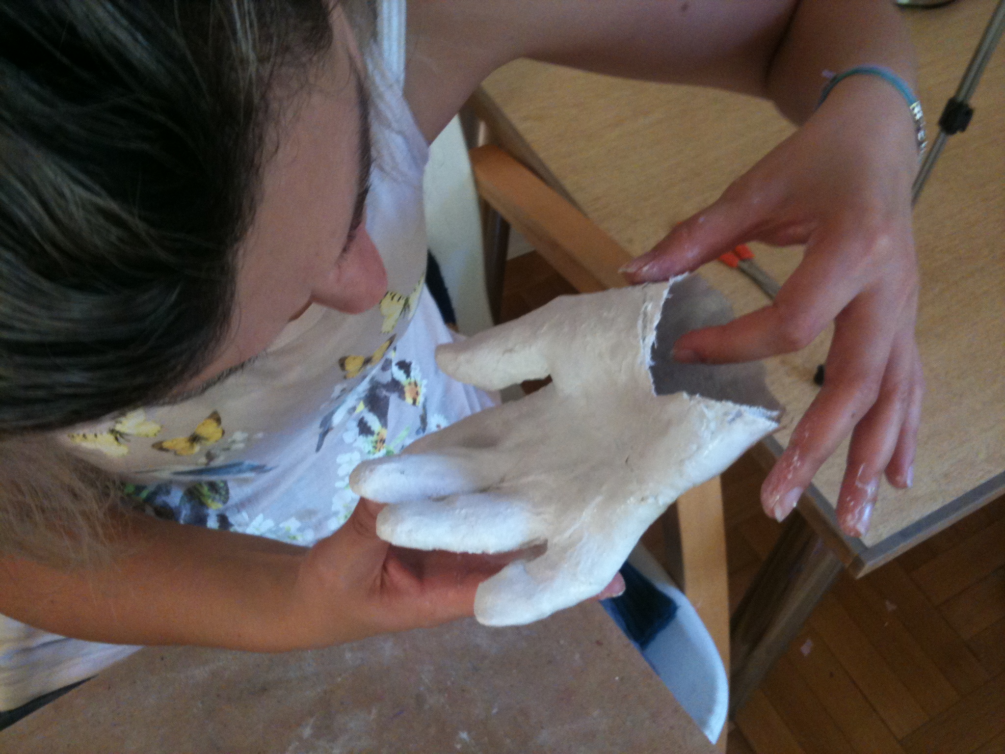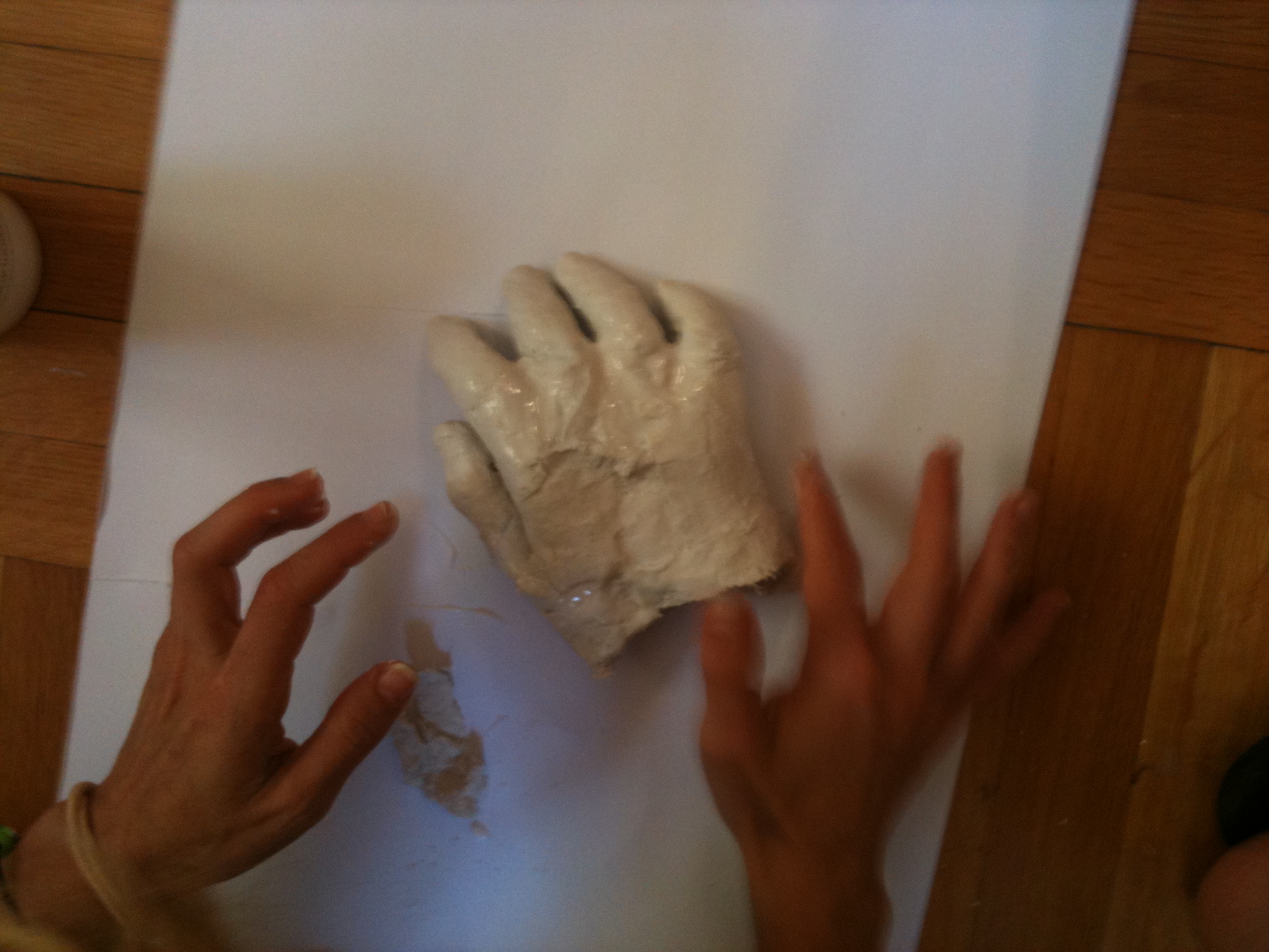 Es ist ein sehr eigenes Gefühl, seine eigene Hand als Abguss in Händen zu halten. Doch bevor die „Geburt“ stattfinden kann, muss der Gips trocknen.