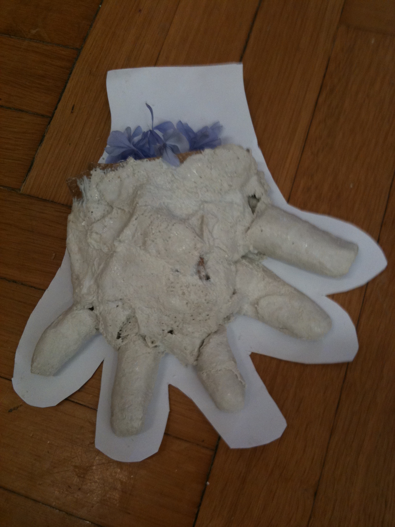 Meine Hand zerbrach. Ich war bestürzt. So sehr hatte ich mir gewünscht, ein schönes heiles Objekt in Händen zu halten. Aber nein, es zerbrach. Was tun? Ich beschloss, der Hand ein großes Begräbnis zukommen zu lassen. Hier sehr ihr das Ergebnis.076 074