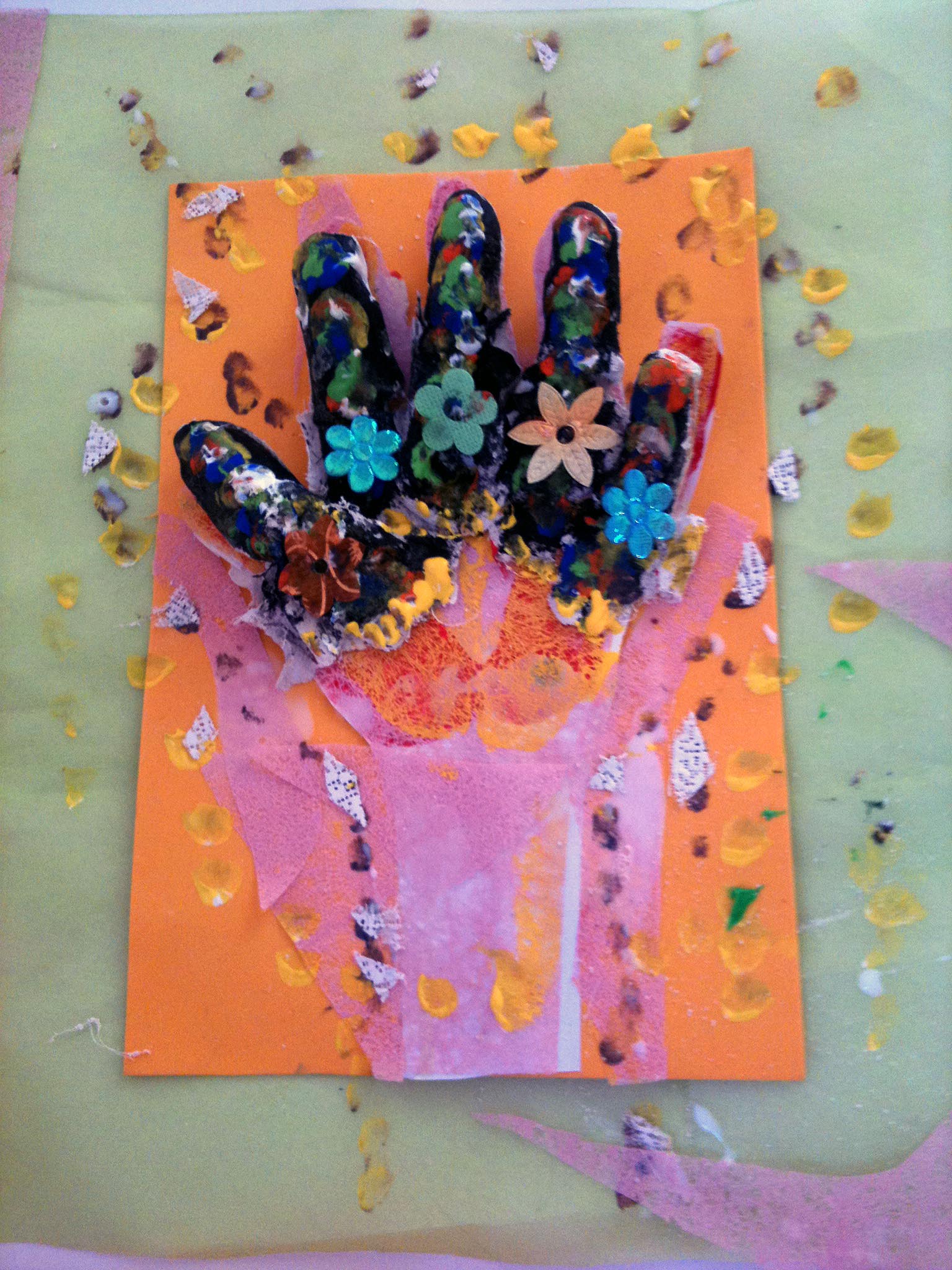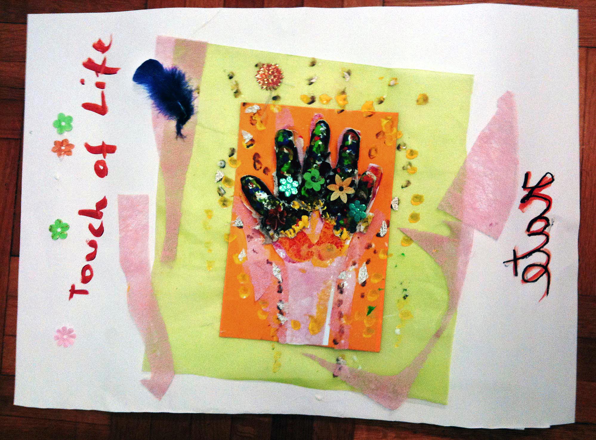 Die Begriffe, die ich hinzu setzte, waren „Touch of Life“ (Berührung durch das Leben) und, in Spiegelschrift und insofern ins Gegenteil verkehrt, „Hate“ – Hass. Ich muss sagen: Ich war sehr zufrieden mit meinem Produkt:  meine zerbrochene, reich geschmückte Hand schien mir genau das zu sein, was ich brauchte.
