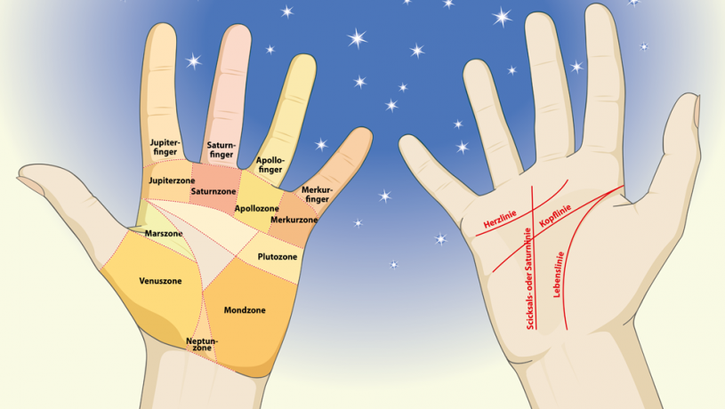 In die beiden Handinnenflächen sind Linien eingeprägt, die die Hauptmerkmale eines Menschen widerspiegeln. K wie κεφάλι (Kopf) und K wie καρδιά (Herz) beherrschen den oberen Abschnitt der Fläche – so, wie sie die oberen Funktionen des Menschen regieren.