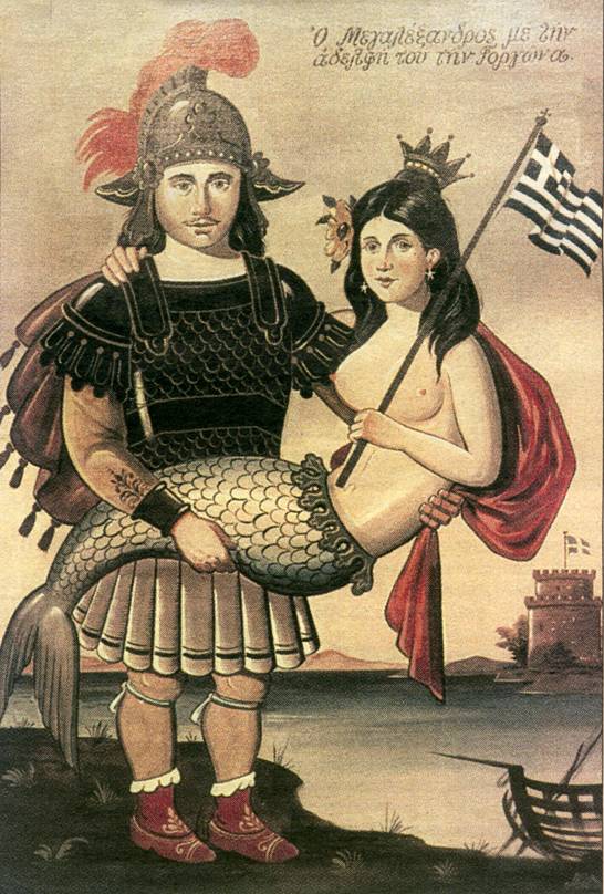 gemalt von Bost (Χρύσανθος Βοσταντζόγλου, 1918-1995) : „Alexander der Große mit seiner Schwester, der Gorgone“