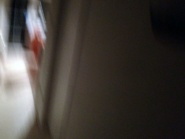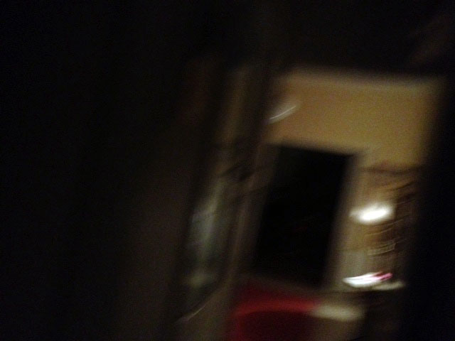 Heute abend machte ich den Weg vom Wohnzimmer in die Küche zwei Mal, bei mäßigem Kunstlicht von zwei Seiten. Es gibt dort nichts Besonderes zu sehen. Beim ersten Durchgang waren dennoch sehr viele Gegenstände zu erkennen, beim zweiten Durchgang verschwanden sie mehr und mehr und schließlich blieben nur noch dunkelfarbige Flächen: