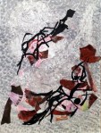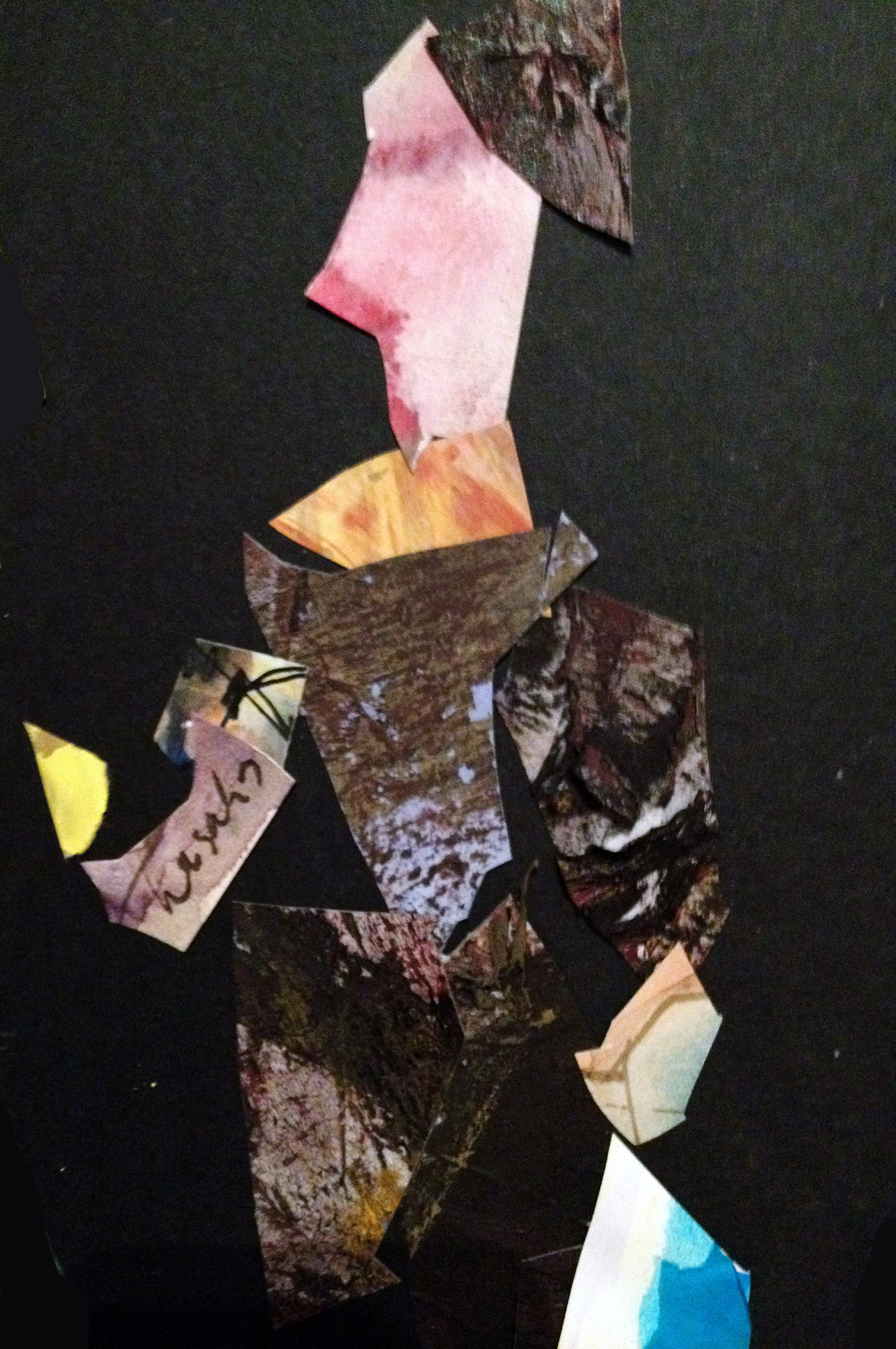 Ich hab mich etwas leichtfertig auf die Liste der Mitmacherinnen setzen lassen, und also musste ich mir auf Tod und Teufel raus etwas Witzig-Poetisches zum Thema Sterben zusammenreimen. Vorgegebene Stichworte sind kursiv gesetzt. Die Bilder lassen sich durch Anklicken vergrößern. Es handelt sich um Legearbeiten aus Schnipseln, die ich aus zerschnittenen eigenen Werken gewonnen habe und die zu einer Vielzahl von neuen Werken zusammengesetzt werden können.