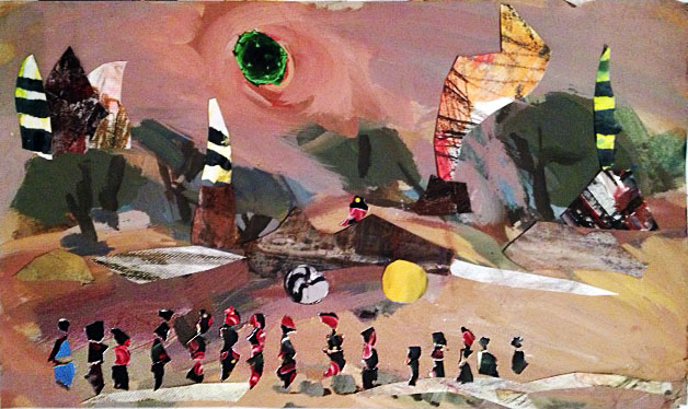 Heute sind die Eingriffe der Menschen in die Natur weit gewalttätiger als zu C.D.Friedrichs Zeiten. Und so habe ich mir gestattet, mein Sonnenuntergangsbild noch ein bisschen mehr zu verschandeln. Aber keine Angst: hier ist nix aufgeklebt. Und es bedarf keiner Bulldozer, um den alten Zustand wieder herzustellen.