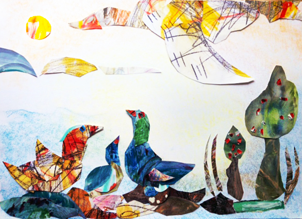 Heute Nacht sortierte ich meine aus Athen mitgebrachten Schnipsel und legte ein weiteres Bild zu Tiu-Ti, dem Bilderbuch, das im Eichhörnchenverlag erscheinen soll. Im Original-Text heißt die entsprechende Stelle: Schau! Gerade jetzt leuchtet im Osten der helle Tui, und du bist aufgewacht und fröhlich, mein Kind.
