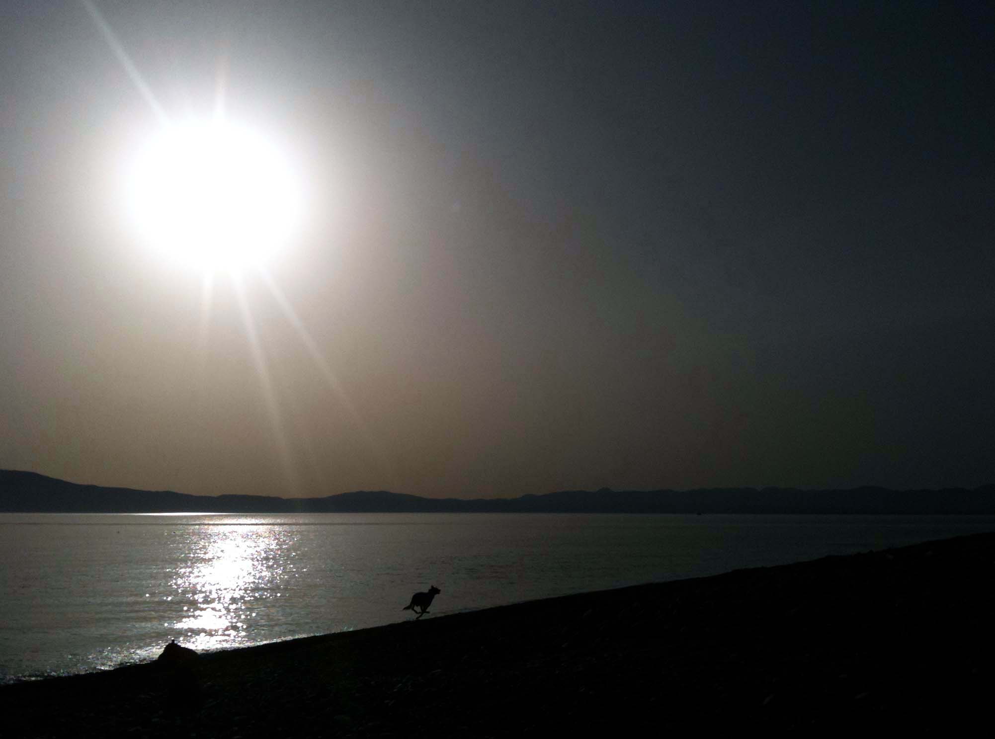 Guten Morgen, ihr Lieben! Zur Ergänzung der beiden letzten Einträge möchte ich euch heute ein Foto mit Wüstensand und Hund zeigen, das ich am 24. April 2012 um 18.48 Uhr an unserer Küste bei Kalamata aufgenommen habe.
