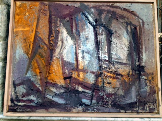 Gestern suchte ich nach einer großen Leinwand, die ich bearbeiten könnte, und fand dies ganz vergessene Bild. 60 x 90 cm ist es groß, sehr grob der Farbauftrag (Akryll-Pigmente und Kleister) auf älteren Farbschichten. Diese Version ist vor ca 5 Jahren entstanden.