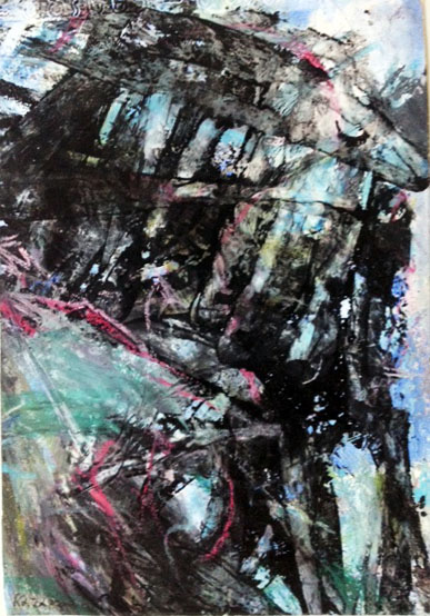 Diese Zeichnung mit Ölkreide auf Papier ist schon ein paar Jahre alt. Ölkreide war eine Zeitlang mein favorisiertes Material. Heute benutze ich sie noch manchmal neben anderen Mitteln.
