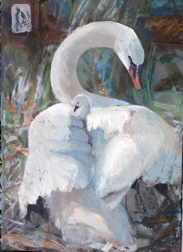 dieses Werk ist zauberhaft schön! Diese liebevolle Fürsorge der Schwanenmutter, hast Du auf eine wunderschöne Weise dargestellt! Im Schoß der Mutter, das Küken genießt die Geborgenheit. Es ist Deine ganz spezielle Maltechnik, die mich immer wieder fasziniert!
