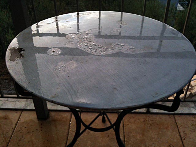 Montags ist Fototermin : Eisentisch als Bildgrund und Spiegel