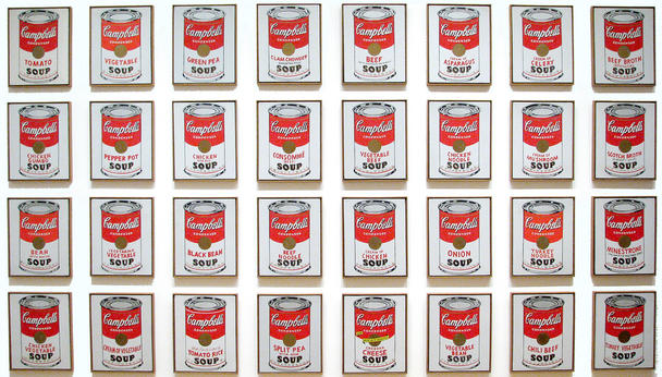 Am Anfang der seriellen Kunst steht die kunsthandwerkliche Nachahmung industrieller Prozesse. Andy Warhol wurde berühmt mit seiner Campbell-Suppendose.