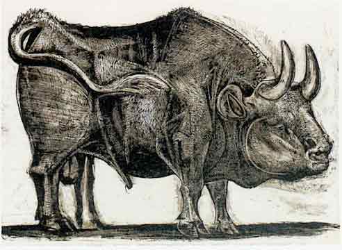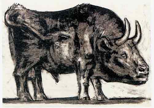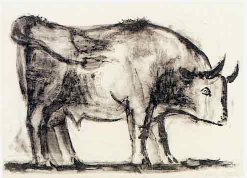Pablo Picasso, „Stier“, 5.12.1945 bis 17.1.1946, Lithografie, ca. 29×42 cm