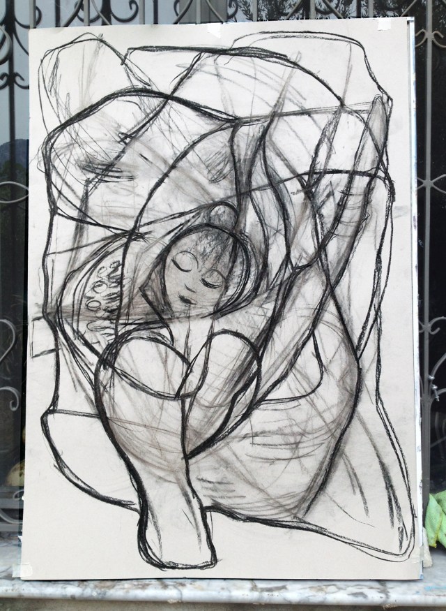 Traumtänzerin, Kohle auf grauem Karton 70 x 100, (c) gerda kazakou
