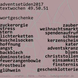 Wörter über Wörter stehen für Christianes Adventsetüden zur Auswahl! Ich fühle mich fast wie in den von Waren überquellenden Kaufhäusern, wo alle schreien: