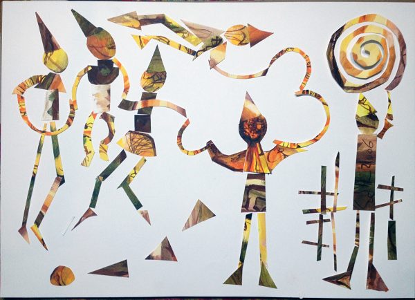 Die Bilder gefallen mir sehr gut. Sie ströhmen Fröhlichkeit aus, im zweiten fühle ich mich erkannt. Ich sehe die Routine und Ideenvielfalt, die du beim Schnipsellegen hast. Wie steif wirkt dageben mein – ich gebe zu mühevoll gelegtes – Bild dagegen. Ich möchte es noch nicht zeigen – ich warte ab, was du mit den Schnipseln vollführst. Hast du sie vor, mit deinen zu mischen? Ist das eine Option? Als ich deine und meine Schnipsel nebeneinander sah, kam mir der Gedanke. Kennst du das kunsthistorisch definierte concetto? Den scharfsinnigen Einfall des Künstler? Den sehe ich in deiner Arbeit.