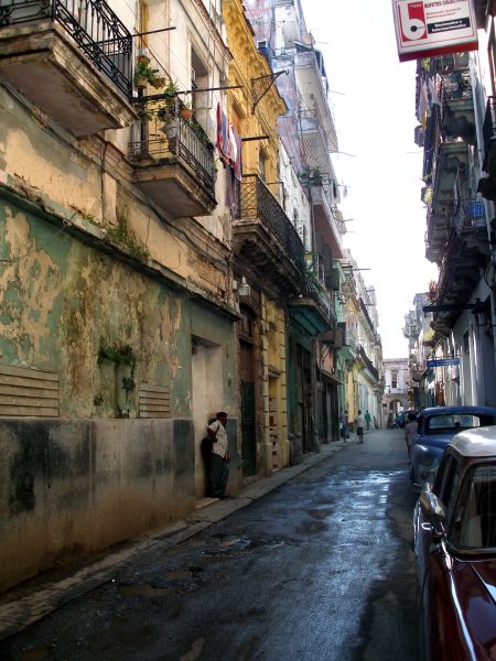 Die Frau, bei der wir uns eingemietet hatten – eine ältliche Kreolin -, wohnte im dritten Stock. Erdgeschoss und die unteren beiden Stockwerke existierten nicht. Unser Taxifahrer rief von unten: Hallo, ihre Gäste! und sie erschien am Fenster und winkte. Man kam zu ihr mit einem Fahrstuhl, der ächzte, aber wunderbarer Weise funktionierte, obgleich die Kabel, wie auch in der Wohnung, wirr offen lagen. Ein überdeckter umlaufender Gang führte zu den Appartments. Fensterscheiben gab es nicht, nur Rolläden, und es war höllisch laut, denn unten gegenüber war eine Autowerkstatt, und es wurde viel gefeiert. Aber wir schliefen himmlisch. Eine schwarze „Freundin“ (Angestellte waren verboten) richtete uns in einem winzigen Küchenverschlag ein köstliches Frühstück aus exotischen Früchten. Wir konnten auch im Salon essen, dann kaufte sie für uns ein Huhn und richtete es sehr schmackhaft an. Die alte Dame verbrachte den größten Teil des Tages im Schaukelstuhl vor dem TV, in dem nur der Staatssender und spanische Seifenopern zu sehen waren, letztere liebte sie sehr. Das Zimmer sah aus wie die griechischen der 50er Jahre: schlicht, kleinbürgerlich, sauber. Drüber wohnte ihr Sohn, der war Physiker, auch seine Frau war Physiklehrerin. Deren Tochter hatte nach Madrid geheiratet. Sie hatten wohl gute Beziehungen zum Regime, daher konnten sie vermieten und auch reisen. Die Abrechnung – 25 Euro pro Nacht – erfolgte sehr genau, mit offiziellen Papieren, abzuführende Steuern und Gebühren waren darauf vermerkt. .
