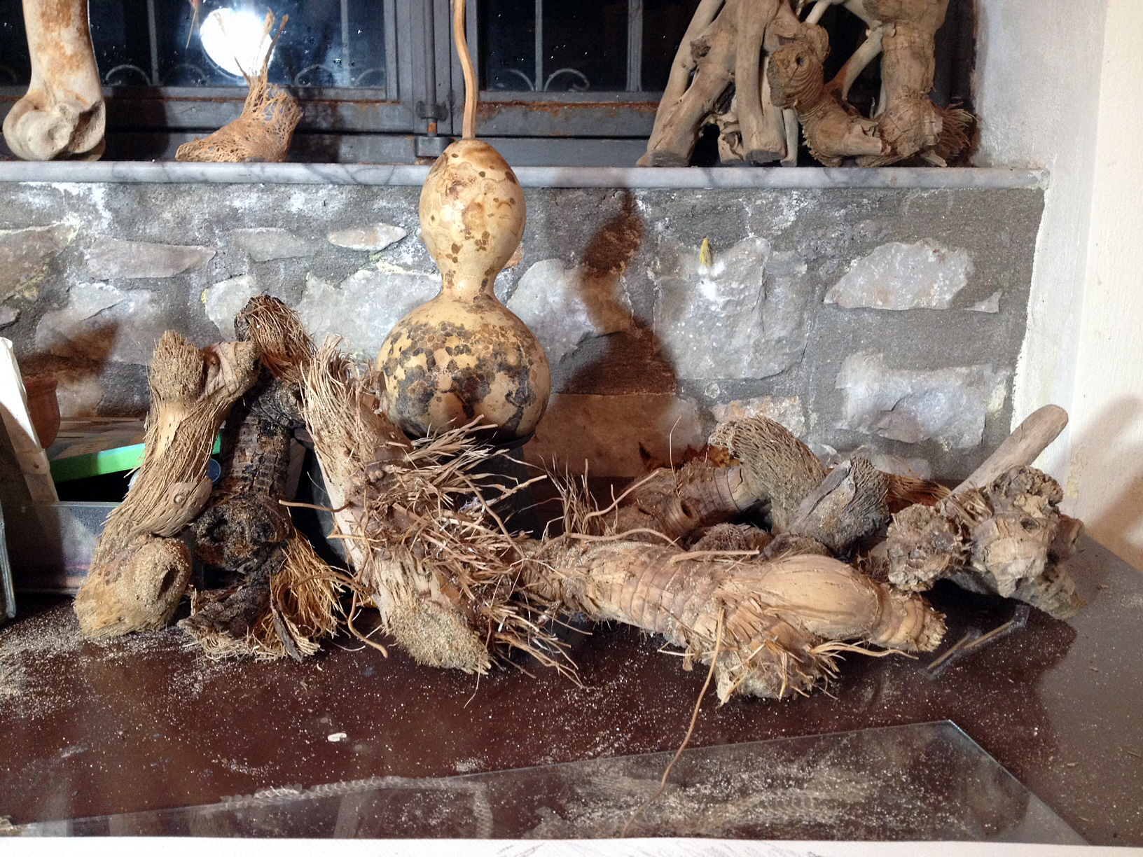 Dann aber hieß es plötzlich:  Keine Zeit mehr für Portraits. Einsammeln, ab nach Athen. Ich schüttete die Wurzelmännchen samt Sand auf eine Arbeitsfläche, stellte auch Madame Kolokytha als Aufpasserin dazu. O wei! Ich hätt es mir ja denken können. Gut, dass ihr ihr Gekreisch nicht hören musstet! Ihre Ausdrucksweise war alles andere als political correct, soviel kann ich verraten. Sie war eben ziemlich in Panik. Ihr eigener Schatten machte ihr Angst! Obgleich ich ihr nicht ganz Unrecht geben konnte, denn das fremde Volk sah ziemlich abgerissen aus, sagte ich hart: „Ich gehe jetzt, Sie werden sich an ihre Gesellschaft gewöhnen müssen“. Und ging. Und schloss die große Tür zum Atelier zu.