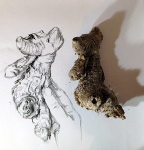 bei mir wohnt ja noch ein Brombär, leider nur noch einer, dies waren Brombeerwurzeln, die H. einst in Form brachte, aber die anderen wohnen eben bei ihm, sonst hätte ich sie einmal zeigen können … tja