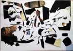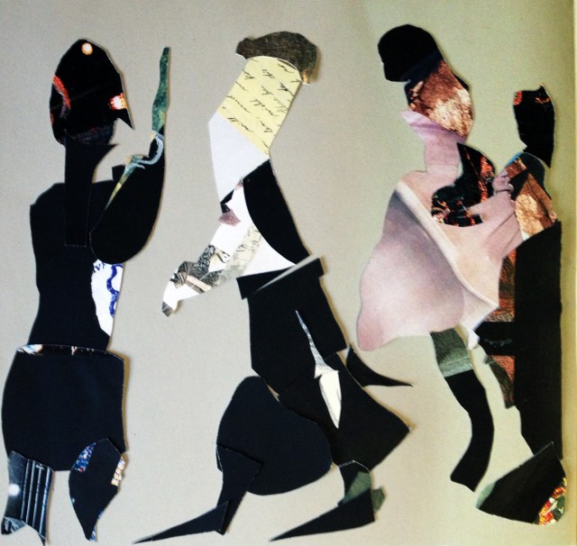 Die Arbeit mit diesen ausgeprägten Formen fällt mir noch schwer. Ich habe eben weiter probiert und nun einen krummen Rücken. denn wegen der Größe der Schnipsel habe ich mich zu einem großen Format (70 x 100) entschlossen. Aber wer weiß….