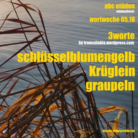 Heute Nacht wachte ich von einer ReimmühLe im Kopf auf. Da tummeLten sich ELLs und ERRs und woLLten vermähLt werden. Und das kam so: ELke SpeideL, geborene LLienert schenkte uns drei Wörter mit vieLen vieLen Ells: SchLüsseLbLumengeLb, GraupeLn und KrÜgLein. Ein klein wenig eR war auch daRin; gRaupeln und KRüglein. Da ich als GeRda geboRene StRuck mich dem ER zugehöRig fühle, kuLLeRten und RoLLten immerzu L-R-Wörter in meinem aRmen Kopf heRum. Ich schlief erst wieder ein, als ich versprach, ihnen eine abc-etüde zu widmen. Da dies nun schon meine dritten Kata-Strophen in dieser Woche sind, verzichte ich auf weitere Vorreden.