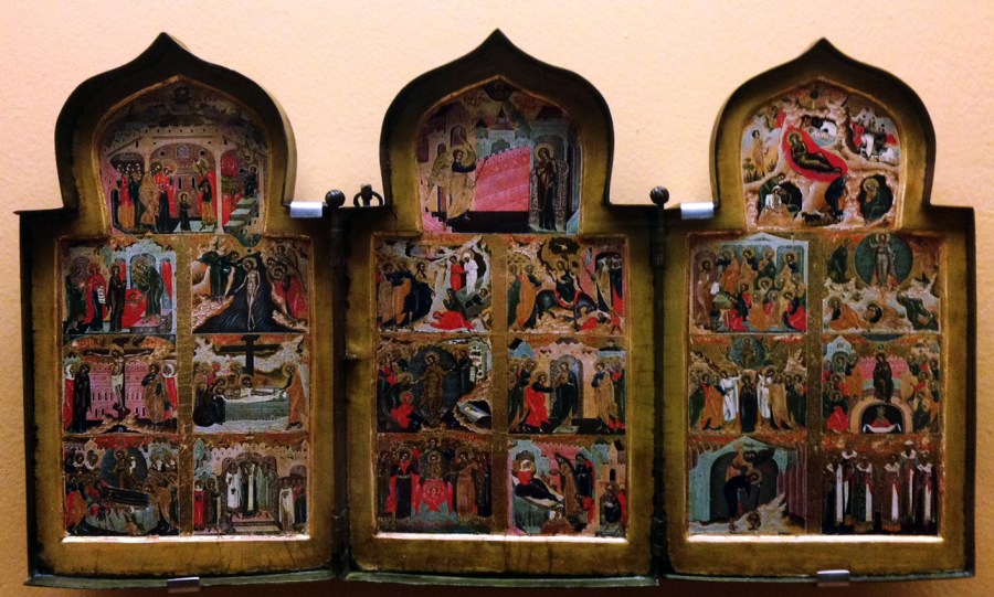 dreiteilige russische Ikone, 16. Jahrhundert, mit griechischer Beschriftung