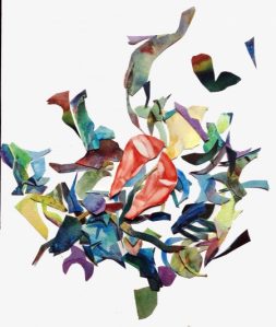Mit der Schere hantiere ich ja sehr wenig. Einmal zerschneiden oder zerreißen – fertig ist das material für zig Bilder. Das Legen benötigt nicht viel Feinmotorik, viel weniger als das Malen. Aber bleib du nur beim Malen, auch beim Kleinformat, obgleich ich mir deine Sachen immer gern groß vorstelle.