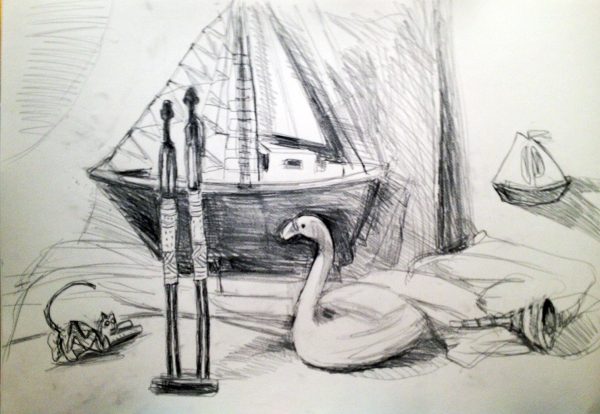 Ein Schwan aus Filz (Bleistiftzeichnung)