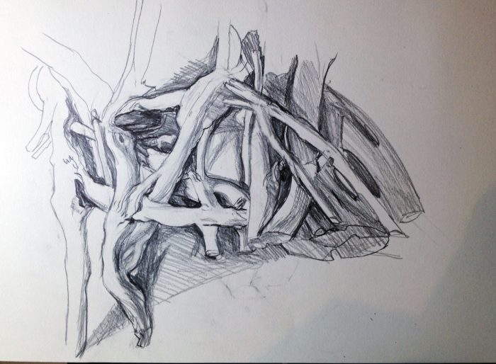 Umklammern, Losreißen, Zusammenwachsen (Bleistiftzeichnung)