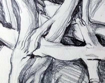 Umklammern, Losreißen, Zusammenwachsen (Bleistiftzeichnung)