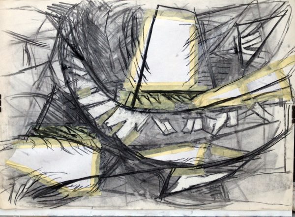 Boote und kein Ende – Kohlezeichnungen, Akryll, Collagen, mixed media.