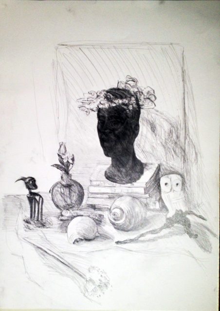 ← Stillleben mit afrikanischer Skulptur (Bleistiftzeichnung)