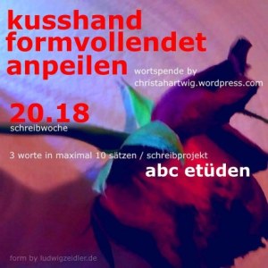 Auch diese Woche der abc-Etüden droht ohne mich zu verschwinden. Schnell schnell ein paar Katastrophen gedichtet, mit Kusshand, anpeilen und formvollendet ist es ein Kinderspiel. Danke, Christa, für die Wortspende, danke Christiane und lz.