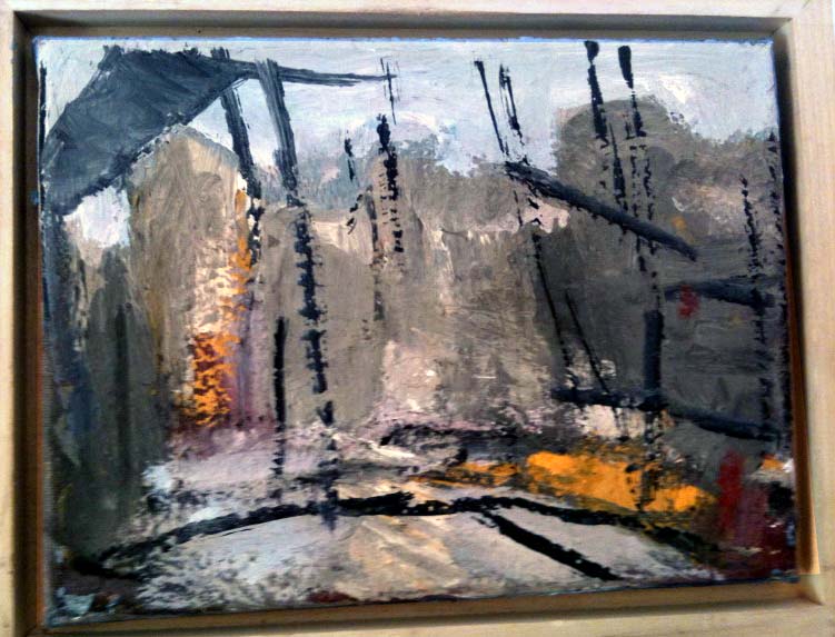 Ja, stimmt, aber ich habe überhaupt nicht an eine Foto gedacht, als ich es malte, sondern an die verwischten visuellen Eindrücke, die man beim Autofahren hat, wenn es regnet und die Scheibenwischer ständig durchs Bild gehen.