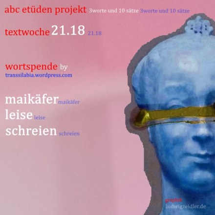 Auch diese Woche rufen die abc-etüden zum Mitmachen auf. Christiane stellte sie auf ihre unnachahmlich charmante Weise vor, Elke Speidel spendete die Wörter „Maikäfer, leise, schreien“ und Ludwig Zeidler (lz.) illustrierte sie fein.