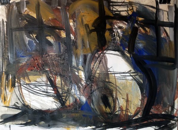 ← „Gefäße vor dem nächtlichen Fenster“, Kohle und Pigmente auf Zeichenkarton