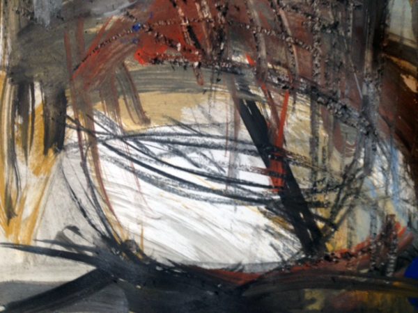← „Gefäße vor dem nächtlichen Fenster“, Kohle und Pigmente auf Zeichenkarton