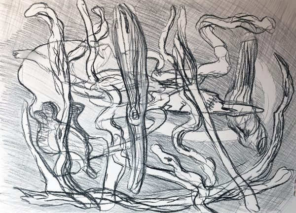 Schlangenbändigung (Kohle-Bleistift-Zeichnung)