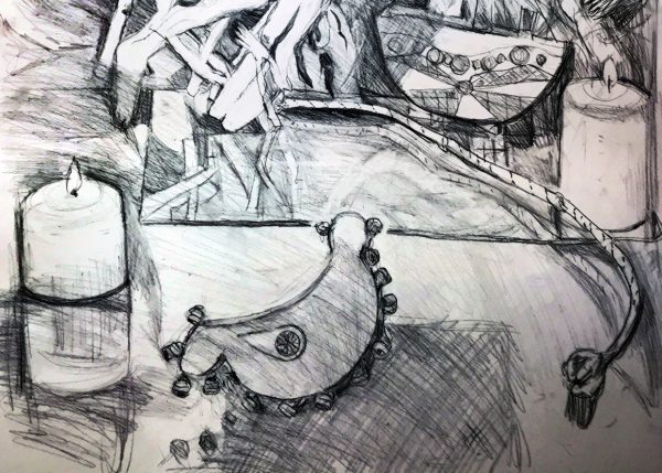 Vorbereitung einer Bleistiftzeichnung : Komposition