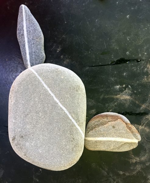 Bilderlegen aus Materialien: ein neuer Stein („ma pas trop vite!“)