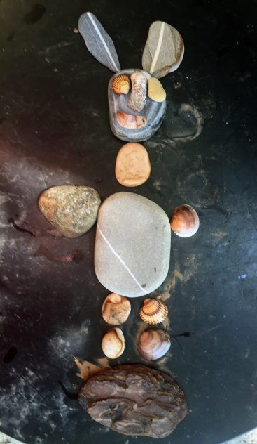 Bilderlegen aus Materialien: ein neuer Stein („ma pas trop vite!“)
