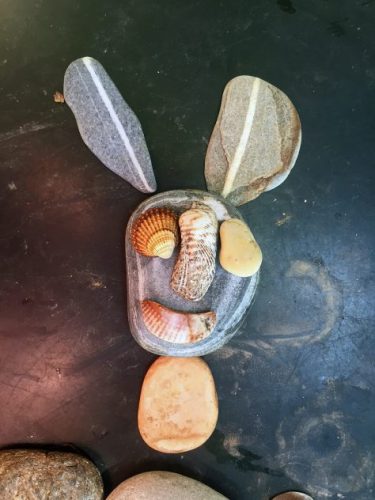 Bilderlegen aus Materialien: ein neuer Stein („ma pas trop vite!“)