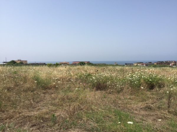 leeres Feld bis zum Meer, darunter liegen andere Areale der Stadt