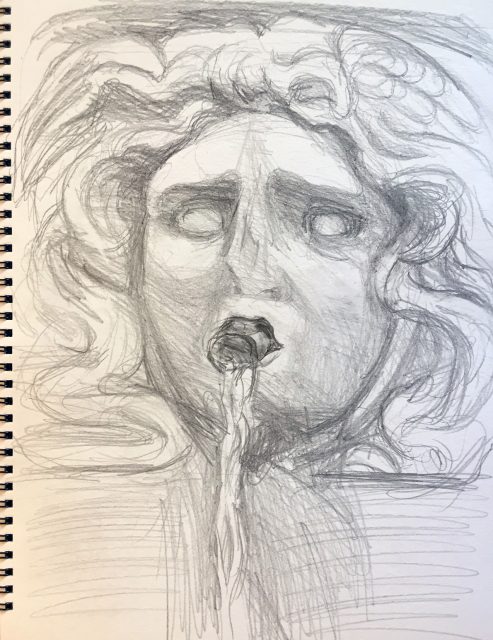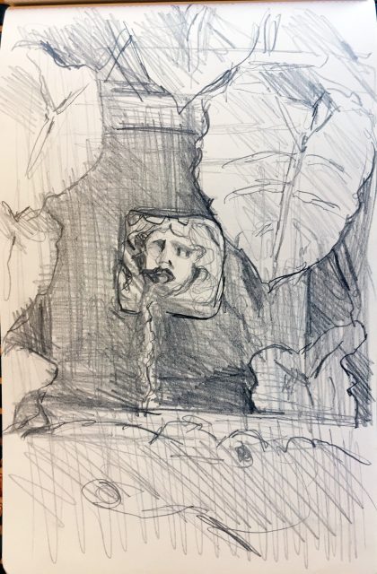 Hier finde ich erstmals Zeit, Ruhe und Kühle, um ein wenig zu zeichnen.
