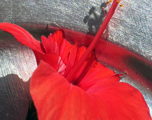 Rote Hibiskus-Blüte mit Spiegelung und Schatten (Parallelaktion 1*)